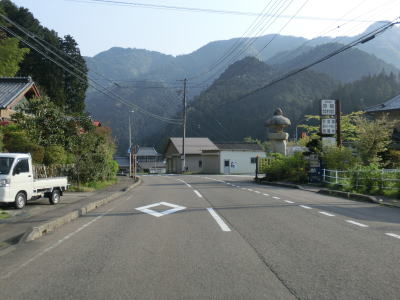 | 菅谷川流域まで下ると平坦かつ直線基調の走りやすい道路状況になる。21km先の郡上市八幡町那比からは全長8m超の大型車が通行不能と警告する標識が立てられている。タラガ谷越を通っていた頃であれば違和感がなかったのだが、タラガトンネルが開通したものの標識は残されたままなのだと思っていた。旧洞戸村の中心部で岐阜r81関市洞戸事務所前交差点を通過して中心部を走り抜ける。その後は蛇行する板取川を2回渡ってから川沿いを北上する。 | ||