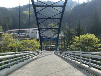 | R41坂東橋西詰交差点を左折してすぐに坂東橋で飛騨川を渡る。橋を渡った東詰でT字路に突き当たるが、ここは左折である。案内標識は設置されていないが、おにぎり下の補助標識の矢印で左折である事が分かる。左折後は集落内の狭路を緩やかに上る。 | ||
