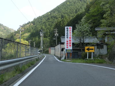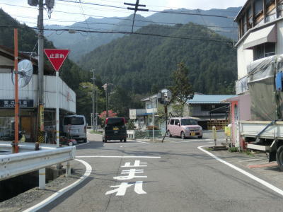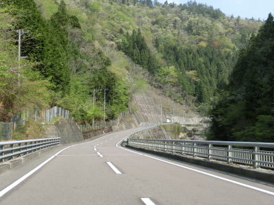 | 道路状況の割に集落は断続的に続いており人里離れた場所ではない。もっともそれはそれで容易に拡幅できない要因のひとつになっているのかもしれない。人里離れた完全な山岳部であれば長大トンネルを掘ってバイパス化するという手法も使えなくはないのだろうが。 | ||