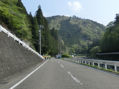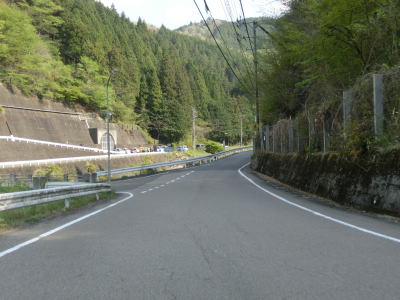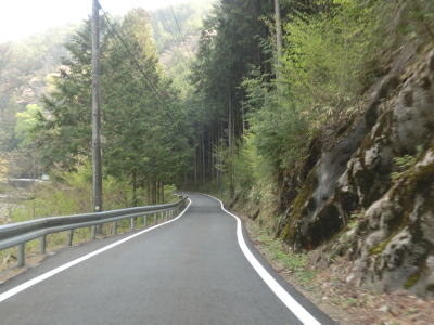| 2車線道路を約1.3km走るとセンターラインがなくなり1.8車線程に狭くなる。何ヶ所か拡幅工事が行われていたが、どれも距離は短く全体が2車線化されるのはかなり先の話だろう。蛇行する佐見川に沿っており勾配はほとんどないが小刻みなカーブは多い。 | ||