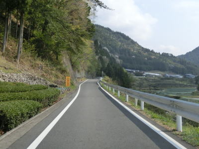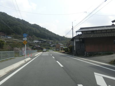 | 佐見川を渡ってからは2車線と2.0車線が混在した直線道路を走る。佐見川の対岸にも道路が走っており、左折するポイントを直進しても約400m上流の橋を渡る事で国道に戻る事ができる。万が一ルートをミスしても大きなロスにはならないのは幸いである。その後は佐見川の右岸を適度なカーブを繰り返しながら2車線道路走る。アップダウンはあるものの概ね上り勾配となっている。 | ||