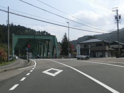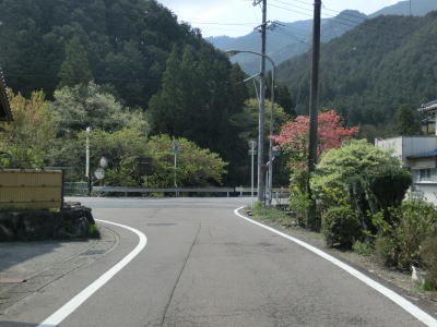 | 高山線が飛騨川に沿うように北西に伸びるのに対してR256は飛騨川から離れる。やや急な右カーブを曲がった直後にT字形状の信号のない交差点があるが、ここは左折して佐見川を渡るルートが国道である。案内標識がないうえに左折する道路に白い破線が描かれているためうっかりしていなくても直進してしまうかもしれない。佐見川を渡った先のT字路を右折するが、こちらは白線によって自然に右に進むようになる。逆方向からのトレースであればルートミスする可能性は低いだろう。 | ||