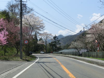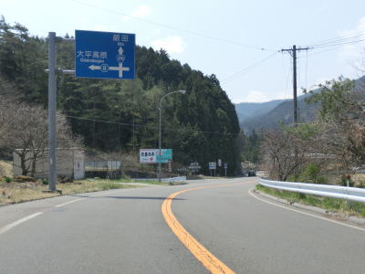 | 8%とややきつい勾配もあるが実際に走って見るとそこまできつい勾配には思えなかった。蘭川に架かる橋を渡る前後で進行方角を東から再び南へと転じ、長野r8との交差点を通過する。左折してr8に進んでも大平峠を経て飯田市の中心部に至る事が可能である。ただ、r8は冬期閉鎖される急カーブが連続する狭路のためか、案内標識には大平高原としか記されてない。 | ||