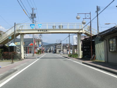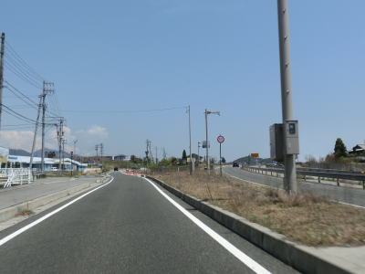 | 反対車線との合流部の突き当たりを左折する。その後は住宅地の中を走る2車線道路となる。三遠南信道の高架下を通るが、低い位置を走っているためただの跨線橋や跨道橋に見えなくもない。三遠南信道から程なくしてセンターラインがなくなり1.8車線幅になる。車道の幅は狭くなったが、歩道は両側に確保されている。センターラインのない状態は約500m続き、右に急カーブした直後にR153バイパスに突き当たる。案内標識は設置されていないが、ここは左折してバイパスと合流する。 | ||