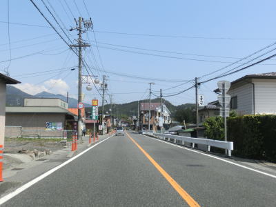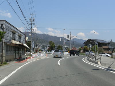 | JR飯田線の上溝踏切を通り、店舗兼住宅と通常の家屋が混在する中を走る。長野r232伊那八幡駅交差点の直後の八幡様前交差点を左折するとR151から分岐して単独区間になる。案内標識にR256の行き先が表記されていない点に一抹の不安と期待を抱きながら車を走らせる。 | ||