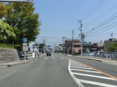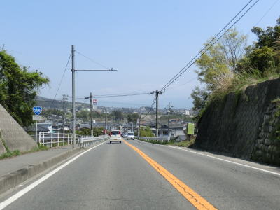| 松川橋を渡った北詰で市道との松川橋交差点を通過し、飯田駅方面に至る市道との交差点を右にカーブしながら通過する。案内標識では右折するかのような表記の仕方だが、センターラインに沿って道なりに右にカーブするような感じである。その後しばらく平坦な状態となるが、左にカーブしながら8%の勾配で市街地のある標高に上る。 | ||