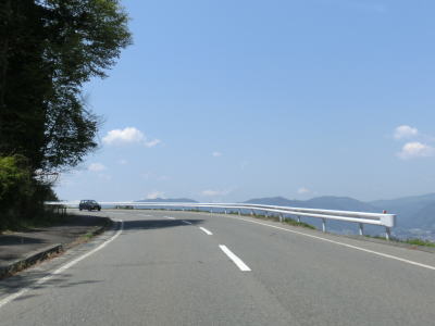 | 山間部のような場所を抜けるとセンターラインが現れて2車線道路になる。相変わらずの上り勾配でヘアピンカーブを含む急カーブがあるものの2車線道路なので走りやすい。景色が開けており天竜川方向を望む事ができる。2車線区間が終わる地点では拡幅工事が行われており、僅かではあるが2車線区間が延伸されつつある。 | ||