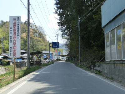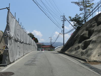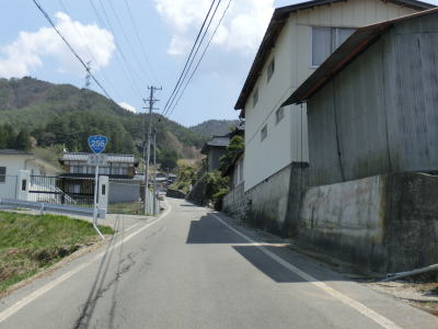 | 下久堅小学校から徐々に沿線の家屋が少なくなる一方で急カーブが多くなり、r1との交差点以東は交通量は少なくなる。沿線に建物がない山間部のような場所を走るが、端点まではまだまだ7km以上残っている。 | ||