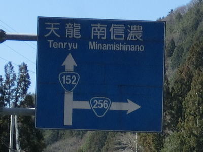 | 飯田市上村側端点から役場前交差点方向に走行する限りは現地においてR256が存在する証拠となるものは見られないが、R152を走行していた場合は案内標識にのみR256の存在を確認する事ができる。旧上村側は存在しているかどうかもはっきりしないR256であるが、R474の矢筈トンネルが既に開通している事もありこの分断区間が解消されて旧上村の区間におにぎりが立てられる可能性は低いと考えられる。 | ||