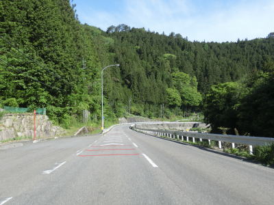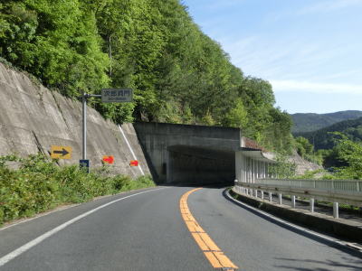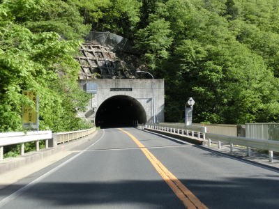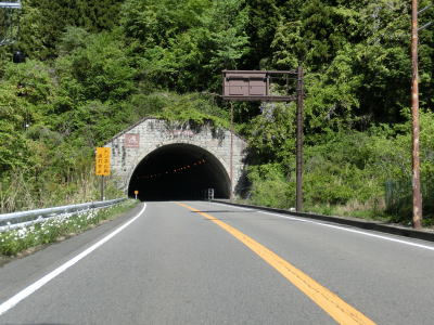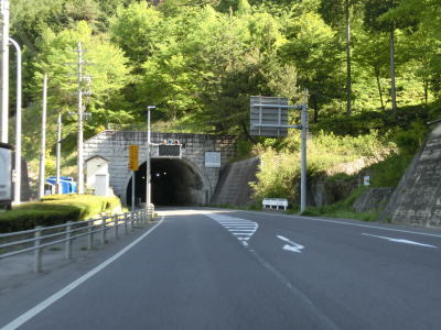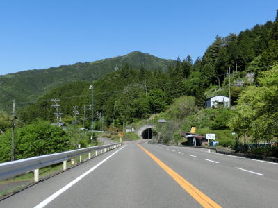 | R153稲武町交差点を通過してすぐに豊田市役所の稲武支所の前を通る。稲武支所西交差点は左にカーブしながら通過する感じである。そのすぐ先で右の急カーブを通過し、名倉川の左岸を走って山間部に向かう。沿線の家屋はなくなり長い上り勾配が続くがセンターライン付きの2車線なので走りにくいという事はない。新ウルシゼ橋を渡ってすぐに川手トンネルに入る。2006年11月に供用を開始した川手トンネルには北向き車線がメロディロードになっており、50km/hで走行するとどんぐりころころのメロディが聞こえるようになっている。メロディロードはここ以外の国道にもあるがトンネル内にあるのは珍しいのではないだろうか。 | ||