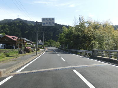 | 川手トンネルを抜けてからは名倉川の右岸に沿って走る。山間部を流れる河川に沿っているが、急カーブは少なく勾配も緩やかなので走りやすい。愛知r356交差点を通過してすぐに名倉川を渡り、直後に愛知r20交差点を通過する。r20から続く緩やかな右カーブを通過してから矢作川に架かる新国境橋を渡って岐阜県恵那市に入る。 | ||