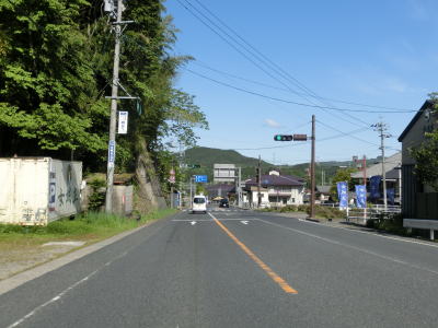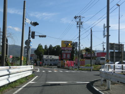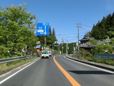 | 東野大橋を通り過ぎると沿線に家屋が見られるようになり、進むにつれて徐々に増えていく。恵那市役所の南でR19生家交差点に至る。R257は右折してR19との重複区間となるが、案内標識の支柱のおにぎり下の補助標識によって右折である事は容易に判明する。 | ||