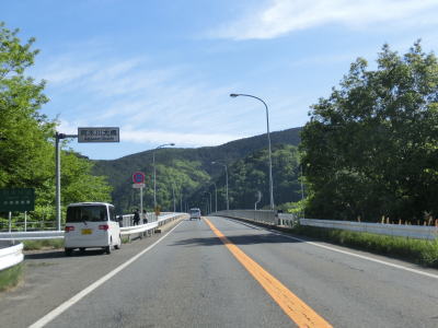 | ダム湖の中央部に架かっている阿木川大橋を渡るが、この橋上の一部が中津川市域に属している。おそらくダムができる以前の地形が市境となっているためこのような中途半端な状態になったのだと思われる。距離が短く橋上だけとあって市境標識は設置されていない。阿木川大橋を渡ると緩やかな勾配の左カーブを曲がって花無山トンネルをくぐり、阿木川ダムの東を通り過ぎる。その後も源吾輪橋から南天高架橋にかけて大きく左にカーブして一気に標高を落とす。 | ||