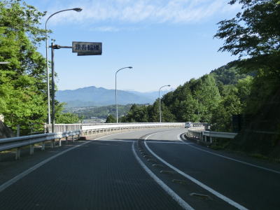 | 日が射し込み明るい雰囲気の谷筋を走っていると賽の神トンネルをくぐる。トンネルを出ると反対車線には登坂車線が現れるが、勾配は特別急という訳ではない。登坂車線がなくなってすぐに飛出山トンネルをくぐる。 | ||