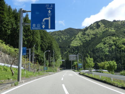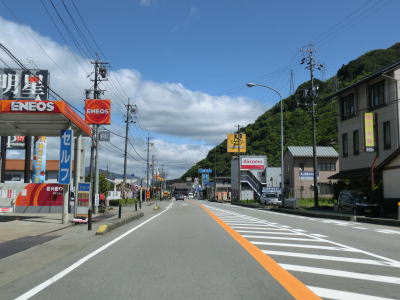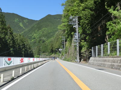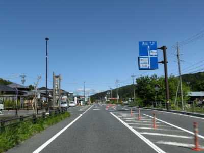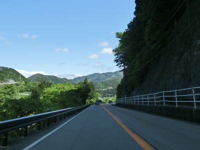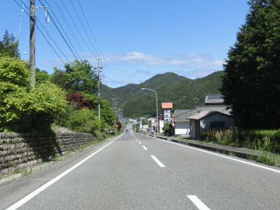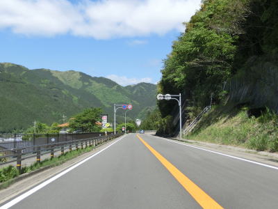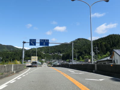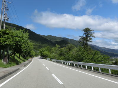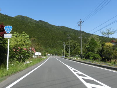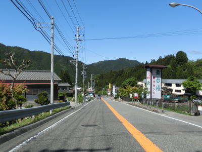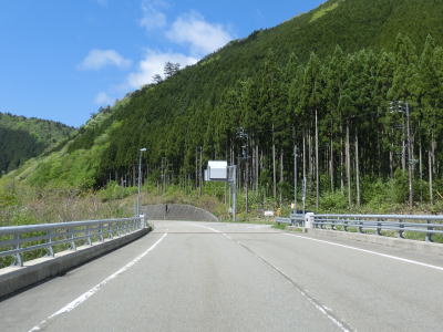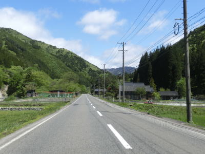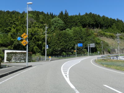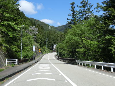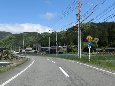 | 万賀交差点からはR256から分岐して単独区間となる。道路状況に大きな変化はなく緩やかなアップダウンを繰り返す2車線快道路が続いている。約2.1km走ると道の駅「加子母」を通過する。「花街道付知」が旧付知町の中心部にあったのと同様に、「加子母」は旧加子母村の中心部に位置している。道の駅以降も加子母川の左岸に沿った2車線道路を快走する。多少のアップダウンはあるものの緩やかで、カーブも緩やかなものばかりなので走りやすい。 | ||