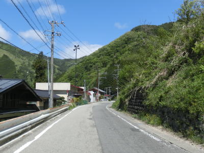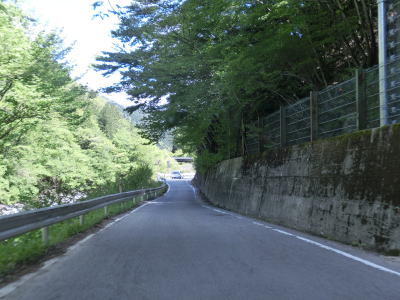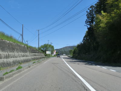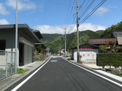 | 1.5車線狭路で桂林寺集落を走る。舗装が張りかえられたばかりなのかアスファルトは新しいため路面の凹凸を気にする必要はない。新しい舗装の区間を過ぎても比較的きれいな舗装の狭路となっているが、黒石垣内集落は少し舗装状況が悪い。 | ||