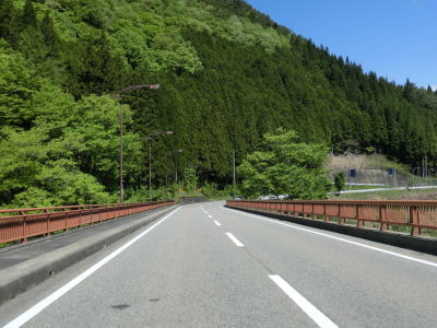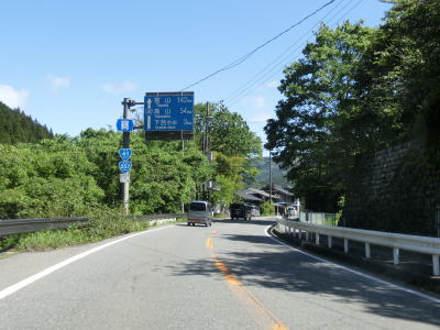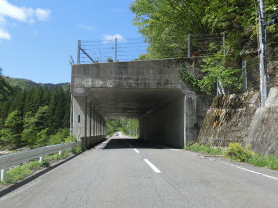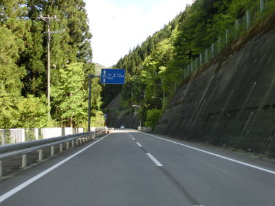 | 老谷洞門を通過してすぐに市境を越えて高山市に入るが、道路状況や沿線の風景に変化はなく、意外にアップダウンのない2車線快走路と淡々と走る。蛇行する馬瀬川を橋梁とトンネルで直線的に走り抜けており、川に沿っている道路が旧道である事は容易に推測できる。 | ||