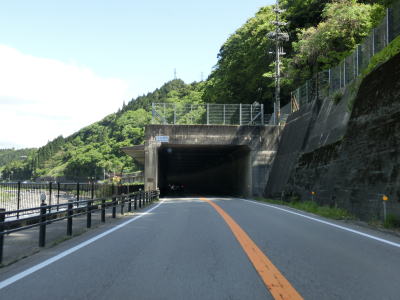 | 旧萩原町の中心部を含む飛騨川流域を見下ろしながら走るが、左のヘアピンカーブを曲がるとそれらが見えなくなる。以降はやや急なカーブもあり勾配も決して緩やかではないが、2車線確保されており交通量が少ないため特に走りにくいとは感じない。花池南交差点から約4.8kmで新日和田トンネルに入る。全長1017mと結構な長さのトンネルで“新”と付いているが、開通は1977年と40年近く経過している。 | ||