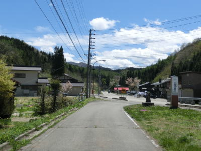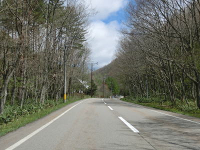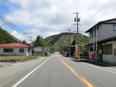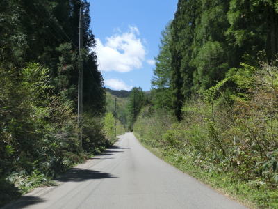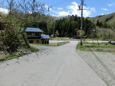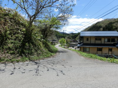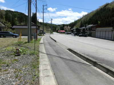 | 左折すると1.0車線幅の狭路を緩やかに下る。需要がなさそうな区間だが路上の堆積物等はなく、狭い点を除けは田舎によくある道路と言える。勾配を下り切った所でR158・R472との三尾河交差点に突き当たる。交差点の南東には「257号」と記された境界杭(?)が立てられており、こちらの道路の方がR257に指定されている可能性が高いと思われる。なお、この案内標識も信号もないこの交差点がR257の終点である。R472は引き続きR158に重複して高山市街方面に伸びている。 | ||