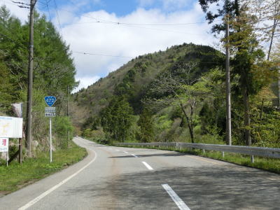 | 馬瀬川を何度か渡りながら旧道と交差しながら2車線快走路と淡々と走る。落石注意の標識が設置されているものの断崖絶壁の谷筋ではなく開けた谷筋のため、落石の危険を肌で感じるような場所ではない。楢谷洞門をくぐり馬瀬川に沿って左にカーブして西の方角に進み、楢谷集落を通り抜ける。楢谷集落から先は右にカーブして6%とやや急な勾配を上り、別荘が点在する中を快走する。 | ||