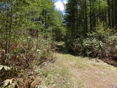 | 227.麦島峠方向からゲートを撮影 | 228.中部電力の保安林内の作業標章にR257の表記あり | |
