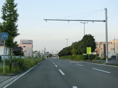 | 梅田川に架かる植田橋を渡ってからは平坦な直線道路を走っていると中央分離帯が現れて片側1車線道路になった後に愛知r408植田町境松交差点を通過する。r408はR259植田バイパスの旧道(との連絡道路)である。 | ||