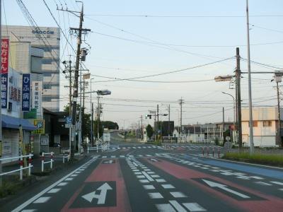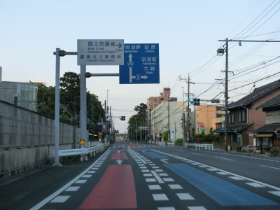 | 時習館高校南交差点からは南向き車線は1車線になるが、北向き車線は2車線ある。愛知r386南栄駅北交差点からは交差点毎に左折車線と右折直進車線に別れるため、直線道路ながらハンドルを左右に振りながらの走行になってしまう。ストリートビューで過去の様子を確認すると南向きが2車線で北向きが1車線だったものを逆に南向き1車線、北向き2車線に変更されたようである。長い左折専用車線の先で愛知r407空池交差点を通過する。 | ||