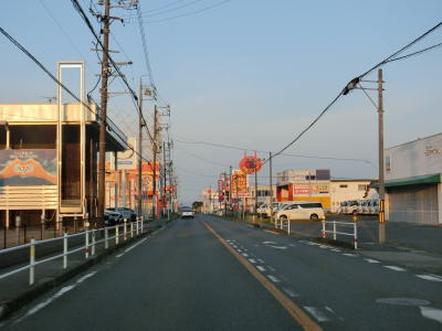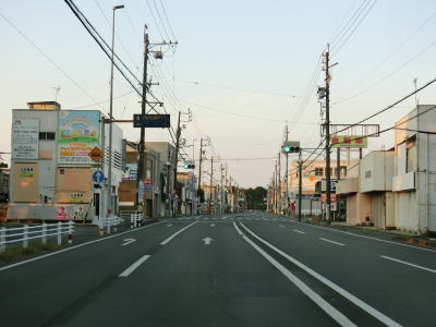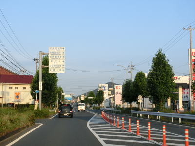 | 高師駅前交差点からは完全に対面2車線道路になる。豊橋市の中心部から離れているにもかかわらず沿線には商業施設が建ち並んでいる。直線道路を下って台地から平地に降りた後に愛知r31植田橋北交差点を通過する。 | ||