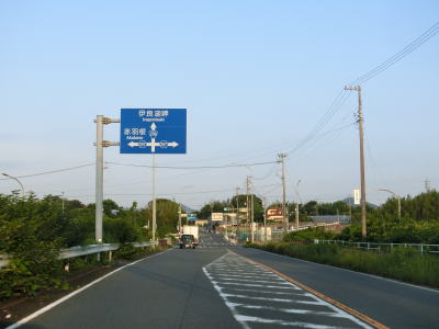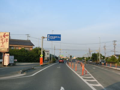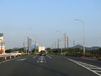 | 名称不明の小さな川を渡ると田原市に入る。境標識は市町村名のみを記したものではなく「花のまち田原市へようこそ」と表記されている。豊橋市側の境標識も「ようこそ豊橋へ」となっている。また、豊橋市の裏面は「みんなの豊橋またどうぞ」と豊橋を離れるに当たって再訪を促す文言だが、田原市の裏面は「この先も安全運転で」と安全運転を促す文言である。 田原市に入ってからもほぼ平坦でカーブの少ない対面2車線道路が続く。蜆川に架かる今田橋の西詰で市道との豊島東交差点を通過し、直後に田原市街方面の側道が分岐する。この側道は旧道であり愛知r28に接続して田原市の市街地を通り抜けている。 |
