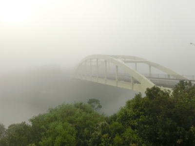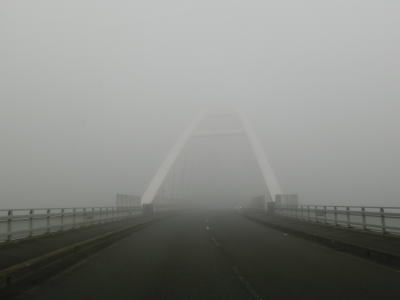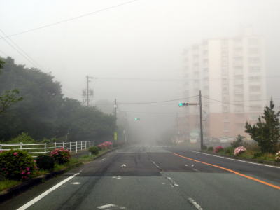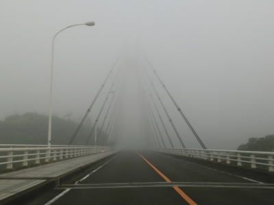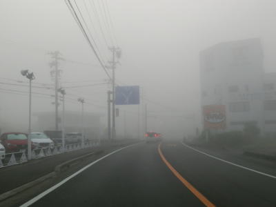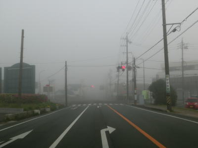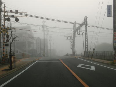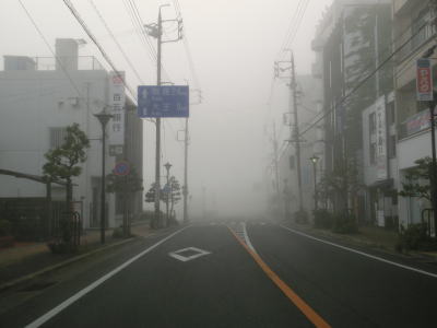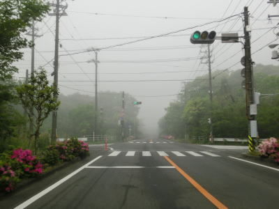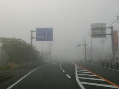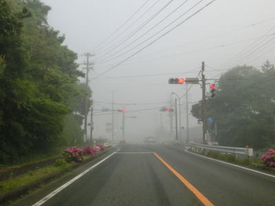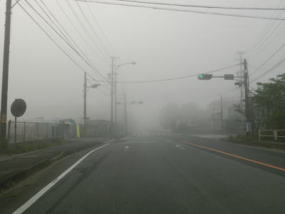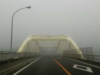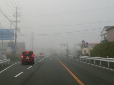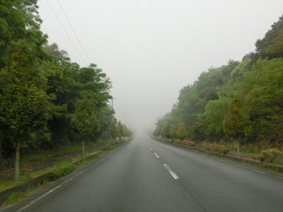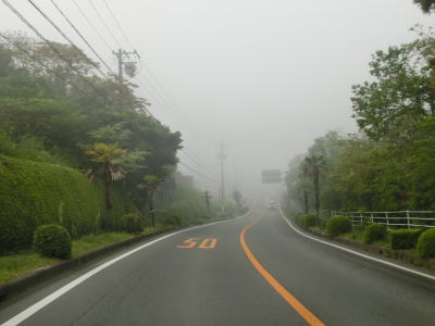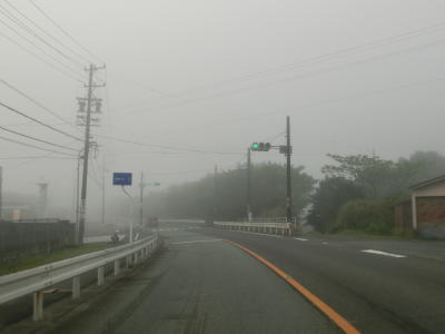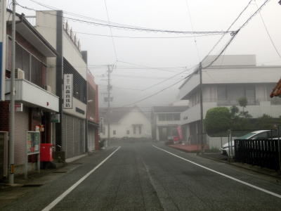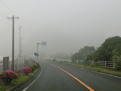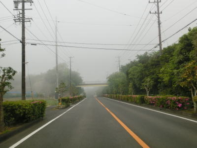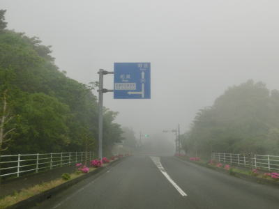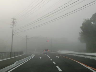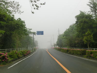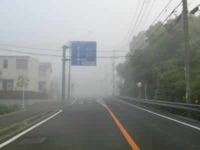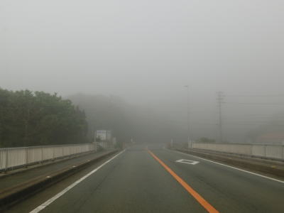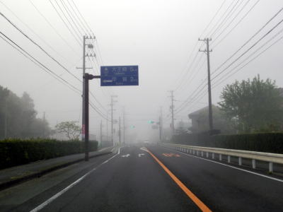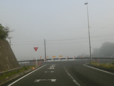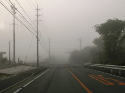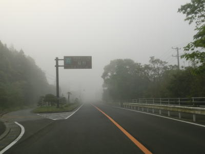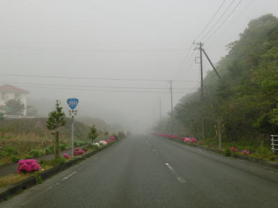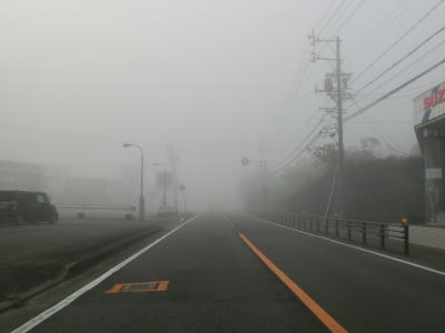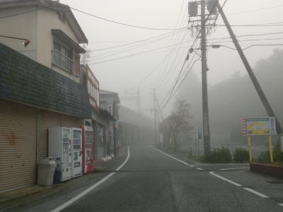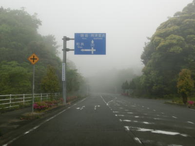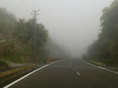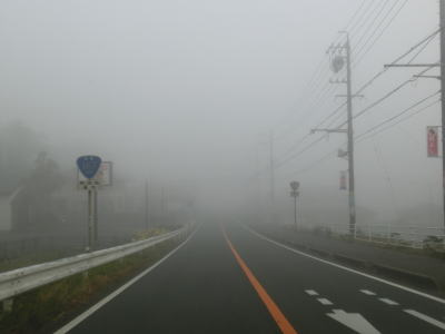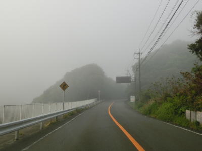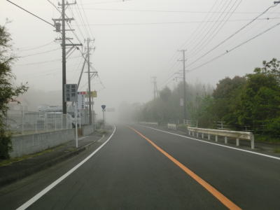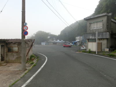 | 46.霧のせいもあって直線道路に見える | 47.越賀方面の市道は幅員狭小 | 48.御座が左折の市道にも案内されている |