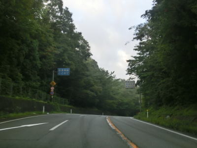 | 引き続き小野山川の右岸の斜面を走っていると小野山隧道をくぐる。トンネルからは右にカーブしており、やや急な勾配を下る。上りとなる反対側車線に登坂車線は設置されていないが、オレンジの実線と白の破線を組み合わたセンターラインのため追い越す事は可能である。 | ||