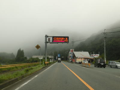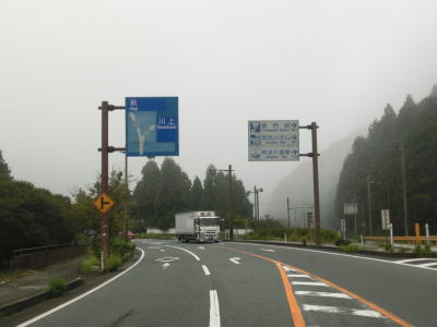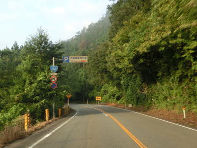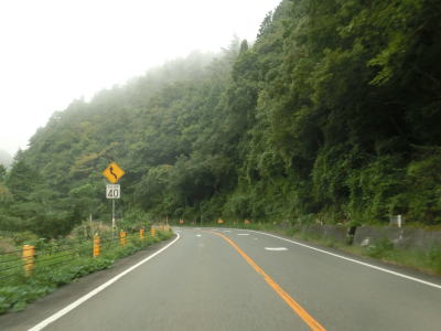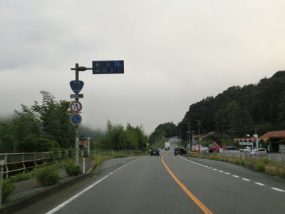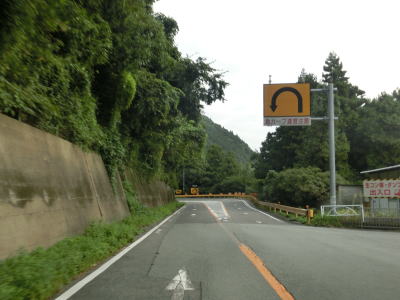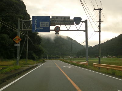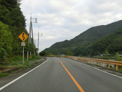 | 阿武川に沿って走り左にカーブした所で異常気象時通行規制の終点を通過する。規制区間の距離は2.5km程度である。規制区間が終わってからも阿武川と山に挟まれた状態が続いており、安全速度は40km/hに設定されている。ただし、道路状況はさほど悪くなく、交通量が少ない事もあってそんな速度で走っていれば追い抜かれる可能性が高いと思われる。 | ||