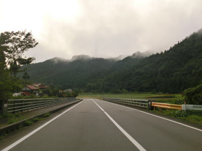 | 山口r32交差点を右折すると交通量が激減するが、道路状況は走りやすい対面2車線道路が続いている。明木川に沿って大きく右にカーブした後に蛇行する明木川を3ヶ所の橋で渡る。 | ||