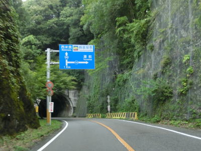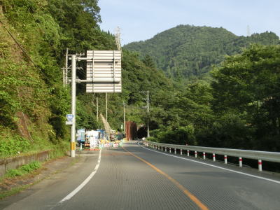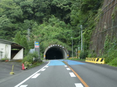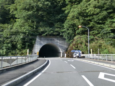 | R327交差点を右折した直後に法面工事のため片側交互通行規制が敷かれていた。工事現場を過ぎた直後に下椎葉第1隧道、次いで下椎葉第2隧道をくぐる。第1隧道の前後に旧道が交差しているが、沿線に集落があるだけでなくその奥にも集落があるため現在でも通行可能である。また、旧道の西には素掘りのトンネルもあり、これも通行可能である。第2隧道にも旧道らしき道路があるが民有地になっているのか車が置かれている。 | ||