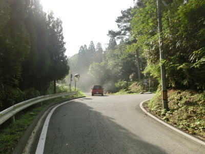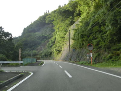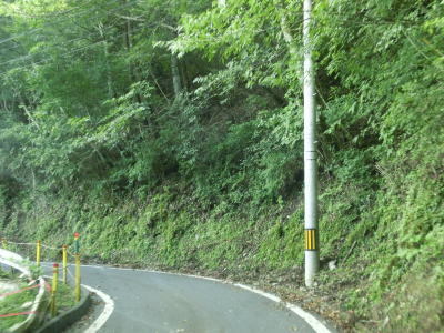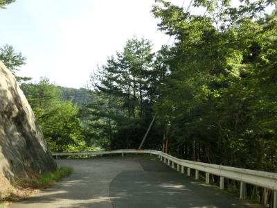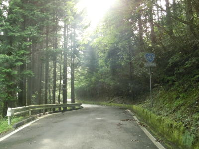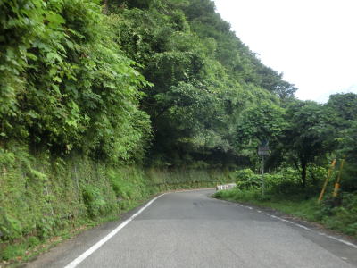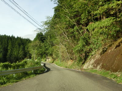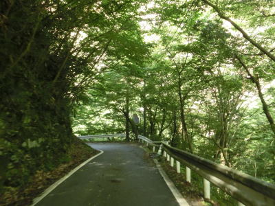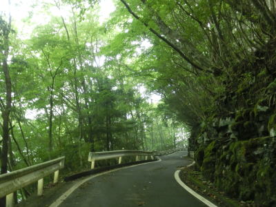 | 1.0車線幅が基本の道幅となりカーブが多く見通しの悪い道路を走る。峠の北側と同様に等高線に沿っているため勾配は緩やかである。落石等の散乱物がない訳ではないが、その数は少なく、舗装そのものは比較的きれいである。 | ||