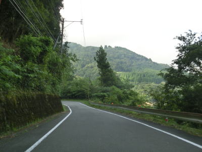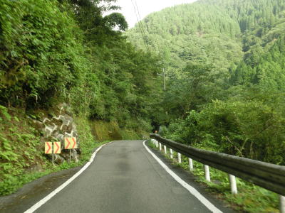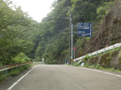 | 上椎葉ダムの真南で村民グランド・体育館に至る道路との交差点を通過する。以降は1.0〜1.5車線の狭路で日向椎葉湖の湖畔を走る。と言っても樹木等に視界を遮られて湖面が見える場所はほとんどなく湖の傍を走っている雰囲気はほとんど感じられない。カーブが多く見通しは悪いが舗装そのものの状態は良く落石等もほとんどない。 | ||