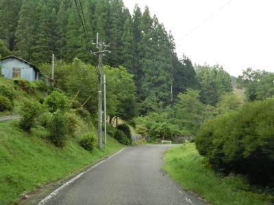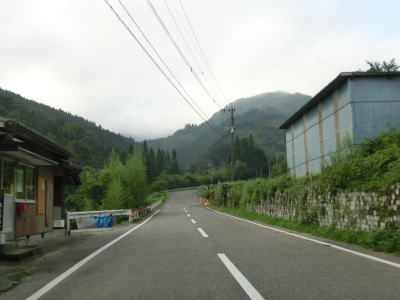| 169.村道との交差点を通過 | 170.椎葉板谷川の谷筋を走る | 171.交通量は極めて少ない |