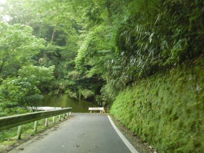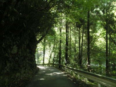 | 1.0車線幅が基本で退避スペースが少ない状況を走る。交通量は非常に少ない区間だが、これより奥にも集落は存在するため対向車が全く現れないとは言い切れない。狩底集落を通過すると幾分か道幅が広くなり、吉野橋を渡った先からはセンターライン付きの2車線道路になる。 | ||
