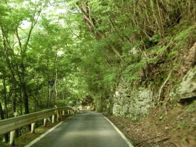 | 163.飯干峠を越えると日当たりが良くなる | 164.峠からしばらくは1.5〜1.8車線幅 | 165.離合できない場所もある |