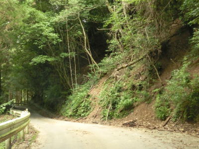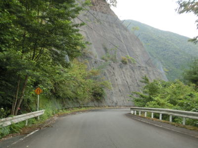| 山岳部を走っているため崩れやすい地質のようで崩落しかけている法面も見られた。道幅が1.0〜1.5車線幅程度と狭く、またカーブも多いので大型車両での通行はかなり難しいだろう。ガードレールの設置率は高く転落の危険性は少ない。 | ||
