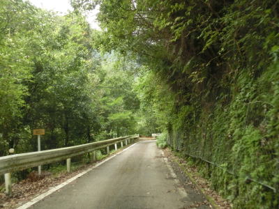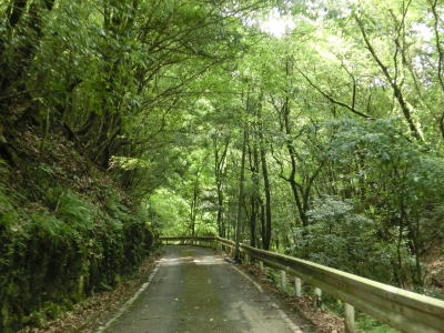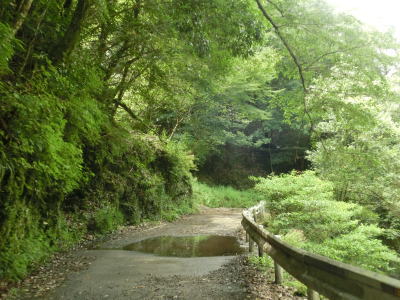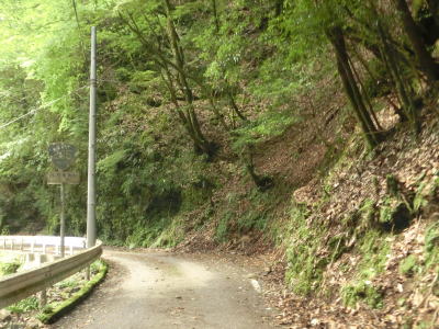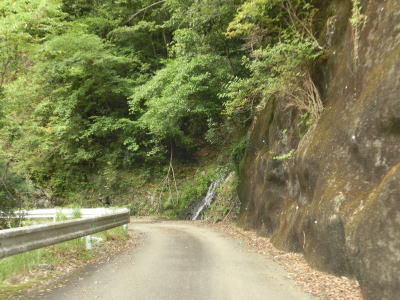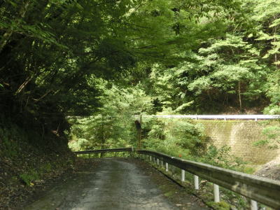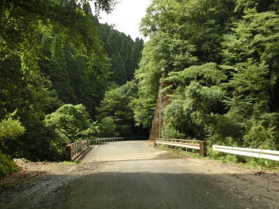 | 尾股川の左岸の谷筋を走っているとやや道幅が広くなった後に清水橋(?)で尾股川を渡る。その後は道幅が狭くなり川沿いの狭路を走る。鬱蒼とした谷筋ではあるが、所々に日が射す場所がある。 | ||