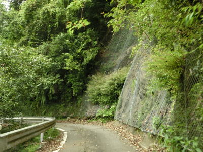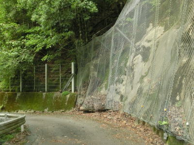 | 269.頑張っている落石防止ネット | 270.側溝がないため路上を流れざるを得ない様子 | 271.完全1.0車線幅区間の割合が多い |