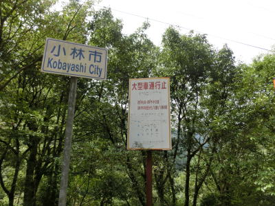 | 小林市に入ってからも道路状況や周辺の風景に変化はなく尾股川に沿った狭路を走る。勾配はほとんどなくカーブも緩やかなものが多い。路上に落ちている物が葉っぱが主という事もあって西米良村側よりも走りやすく感じる。あくまで、西米良村側の尾股峠を挟んだ区間に比して、という意味である。「40.5」のキロポストを通過するが、この距離は起点の本町交差点までの距離にほぼ等しい。 | ||