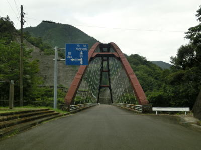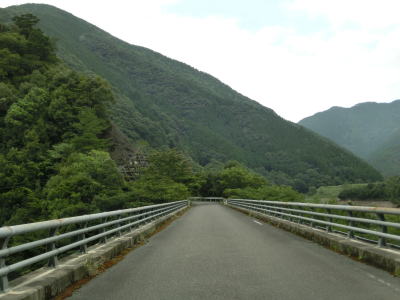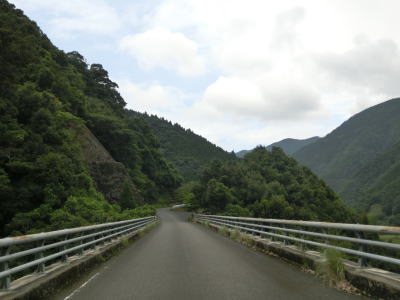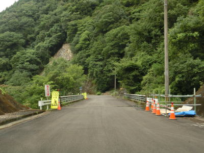 | 263.橋上だけ少し広い | 264.多少の落石は酷道に付き物 | 265.左の橋の先に尾股小中学校跡がある |