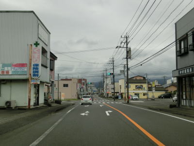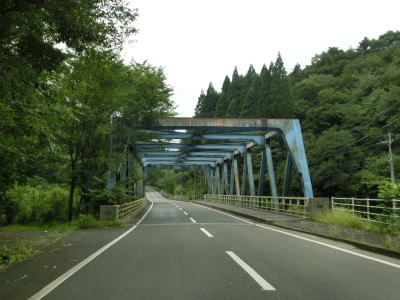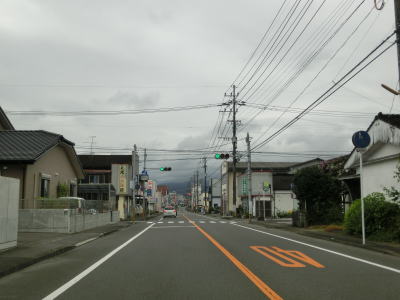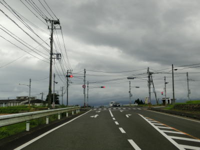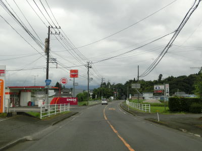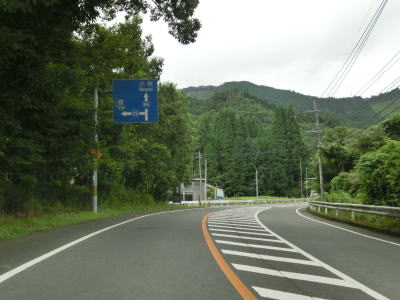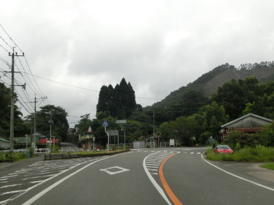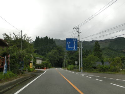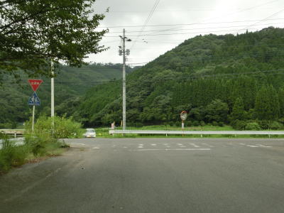 | 勾配が緩やかになり平野部(厳密には盆地か)に出た所で市道との交差点を通過する。この交差点には信号機が設置されているが、R219との村所交差点以来、実に58km振りに見る信号機である。その交差点からも下りが続いているが、勾配は緩やかで周辺には集落と田畑が広がっている。交通量は増えているが、これまでに比べればの話で一般的には少ないと言える数である。 | ||
