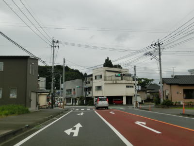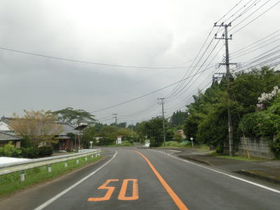 | 猫坂集落を通過して緩やかな勾配を上っていると右にカーブしている地点で猫坂公園を通過する。公園と言っても遊具や展望台等のないただの駐車スペースである。その後も集落のない場所を2車線道路で快走する。山ノ口原集落からは断続的に集落が続いている。 | ||