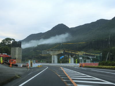 | 水俣川の右岸の山裾を走っていると建設中のE3A南九州道と並走し、旧道らしき市道との長野町交差点の先で橋梁予定地を通過する。2022年11月の時点では水俣IC〜出水IC間が建設中であり、開通時期は未定である。 | ||