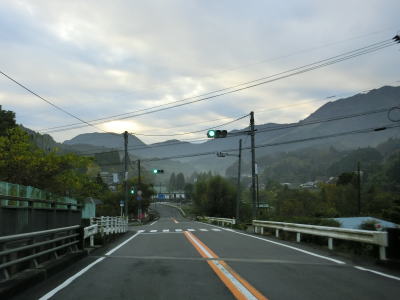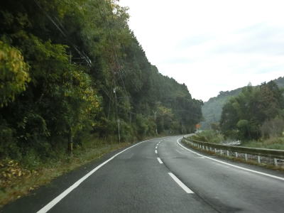 | 新久木野橋を渡り終えて下り勾配が終わって平坦になった所で熊本r15交差点を通過する。その後しばらく水俣川の右岸を走り、葛渡集落で葛渡橋を渡って左岸に移る。少し上流側に同名の葛渡橋が架かっており、その前後の道路が旧道と思われる。水俣川の左岸に移ってからも走りやすい2車線道路が続いている。 | ||