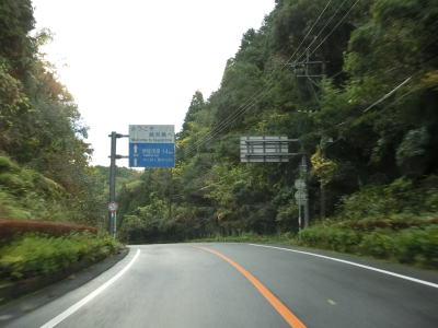 | 緩やかな勾配を上り、家屋が数軒だけの山小場集落を通り抜けた直後に鹿児島県伊佐市に入る。県境標識は都道府県名と市町村名の小さいものではなく、通常の案内標識の大きさで伊佐市街までの距離が表記されている。逆方向の走行であれば水俣市街までの距離が表記されている。 | ||