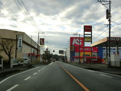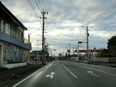 | 中町交差点からはR267に代わってR447が重複しているが、道路状況に大きな変化は見られない。伊佐市の中心部のため交通量も沿線の商業施設も多い。左カーブを曲がっていると上り勾配となって忠元陸橋を通過した後に下る。陸橋の下は市道が通っているが、立体交差点ではく国鉄宮之城線やJR山野線が敷設されていた名残である。 | ||